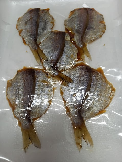 真空パックを開けずに流水で解凍してください。 冷蔵庫での解凍も可能です。 みりん干しは焦げやすいので、身の方から中火でじっくりと焼いて、焦げ目がついてきたらひっくり返します。皮は身より焦げやすいので中火から弱火で、身を9割、皮1割の加減で焼いて下さい。